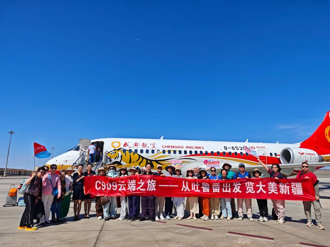 “C909云端之旅”新疆旅游首发团共计27名旅客搭乘C909环疆快线,体验“独库北疆4飞10日游”特色路线,成为“航空+文旅”这一创新旅游模式的首批体验者。首发团游客毛文贵高兴地说道:“吐鲁番热情似火,葡萄香甜,行程贴心,住宿舒适,感觉超值,回去后我会推荐朋友再来体验‘C909云端之旅’。”